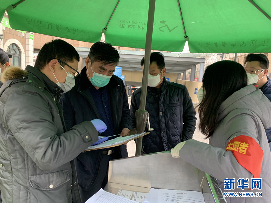 2月20日,天津市濱海新區(qū)政協(xié)副主席、應(yīng)急管理局黨組書(shū)記、局長(zhǎng)、退役軍人單玉厚(左二)生前在疫情防控一線工作。 新華社發(fā)