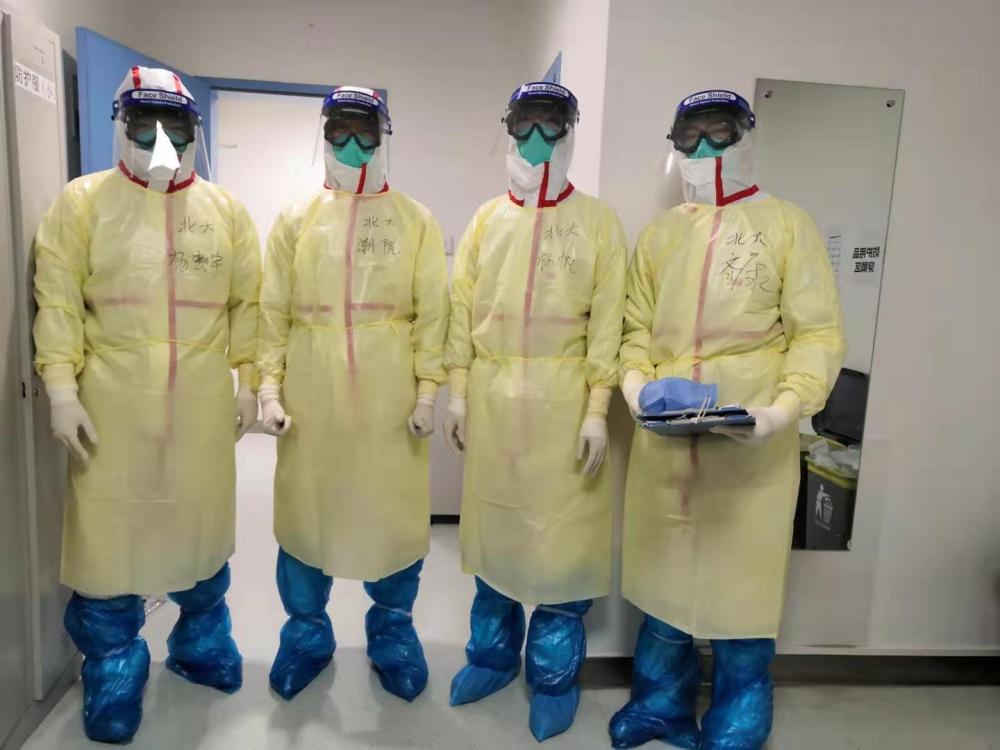 圖為北京大學(xué)第一醫(yī)院援湖北醫(yī)療隊(duì)李海潮與同事在武漢工作中合影。