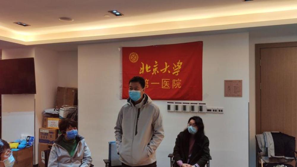 圖為北京大學(xué)第一醫(yī)院援湖北醫(yī)療隊(duì)李海潮和2019級(jí)臨床專(zhuān)業(yè)的學(xué)生開(kāi)網(wǎng)絡(luò)會(huì)議。