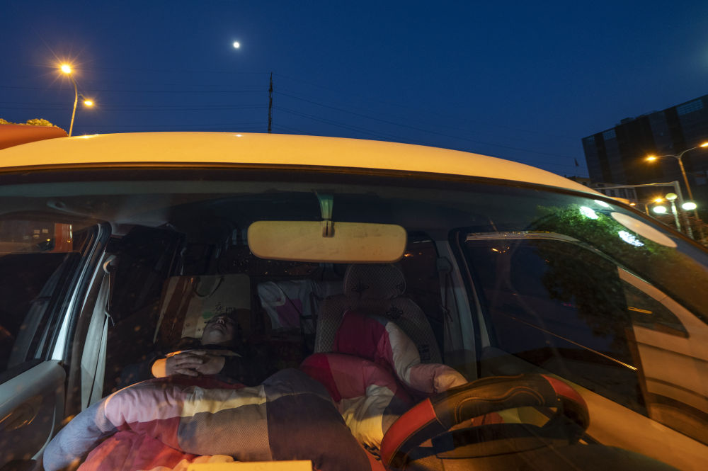 ↑3月7日,入夜之后,馬增辰在自己的面包車上進入了夢鄉(xiāng)。此時,一輪明月爬上了半空。