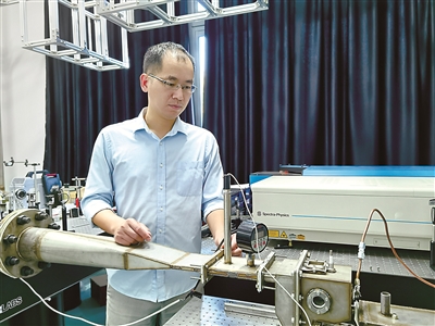 圖為尤延鋮教授在調(diào)試用于發(fā)動機燃燒室光學(xué)測量的激光測試儀器。(廈門大學(xué)供圖)