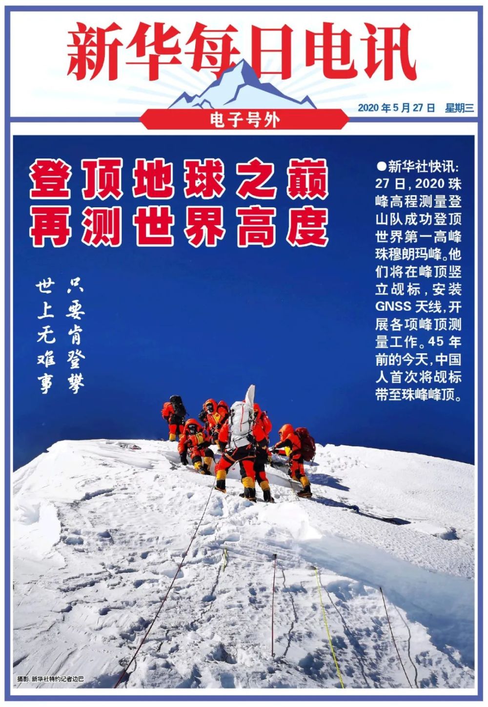5月27日,2020珠峰高程測量登山隊