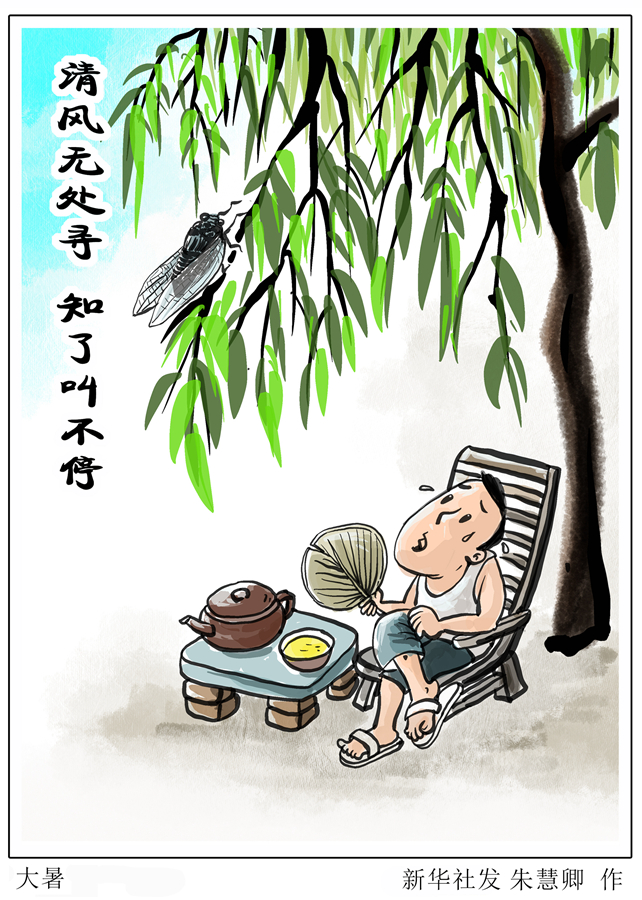 “大暑熱難當,知了叫不?!?。羅澍偉提醒說,此時節(jié),暑熱難消,心氣容易虧耗,建議公眾保持安寧清靜的心境,如端坐閉目、聽聽舒緩的音樂,或到湖邊進行散步、打太極拳等有氧運動。
