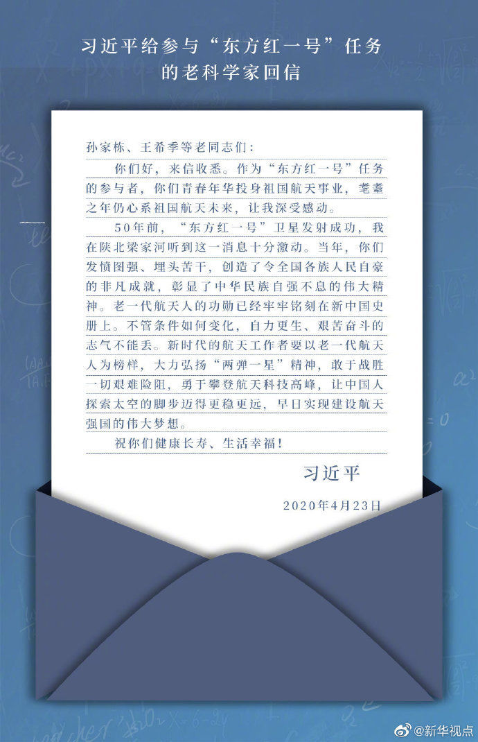 “敢于戰(zhàn)勝一切艱難險阻”——今年4月,習近平給參與“東方紅一號”任務的老科學家回信時這樣寫道。