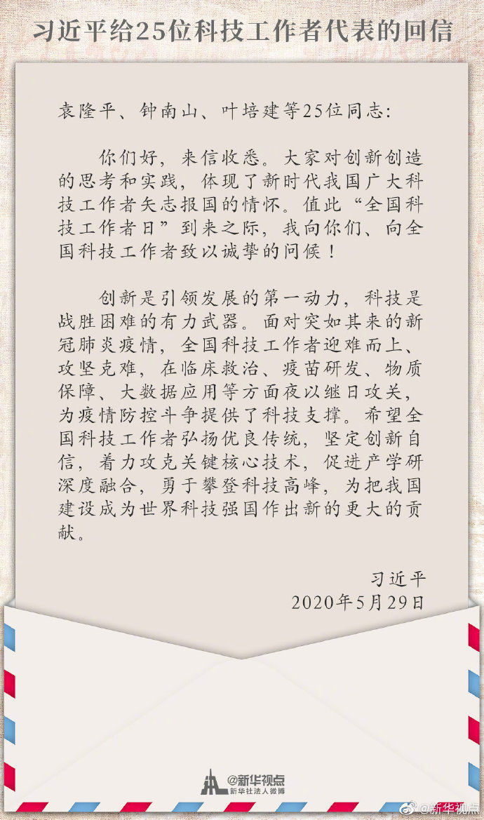 “科技是戰(zhàn)勝困難的有力武器”——今年5月,習近平給25位科技工作者代表回信時這樣勉勵。