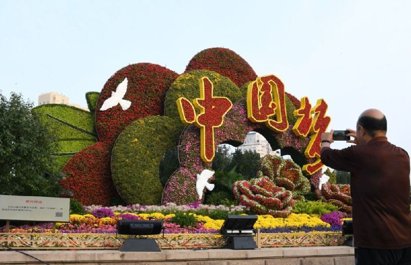 今晨,北京長安街10處國慶主題花壇驚艷亮相