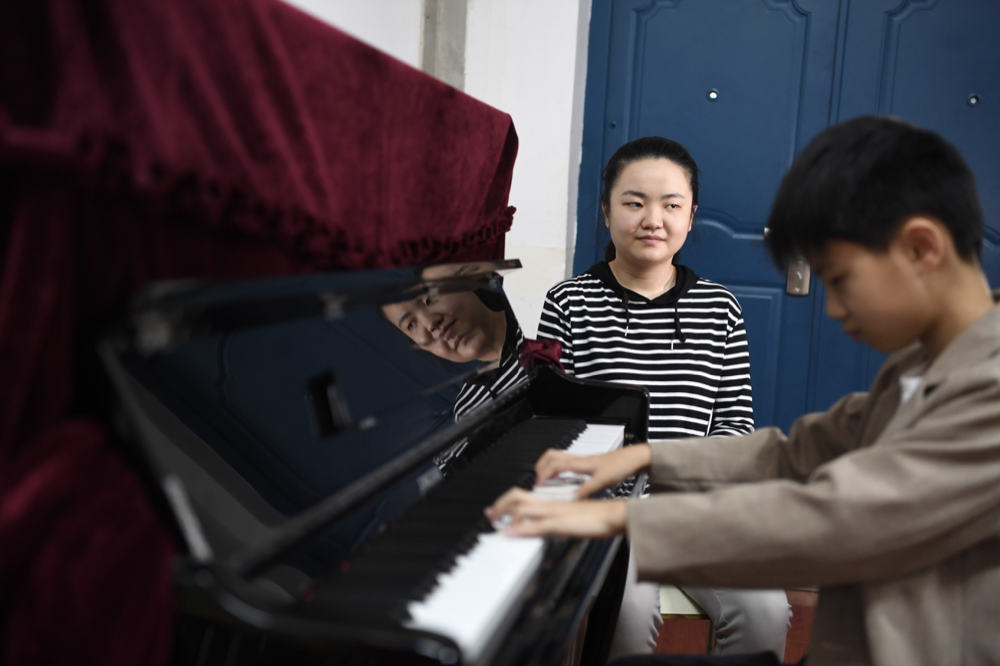 王香君在合肥特殊教育中心為學(xué)生演奏鋼琴。新華社記者 黃博涵 攝