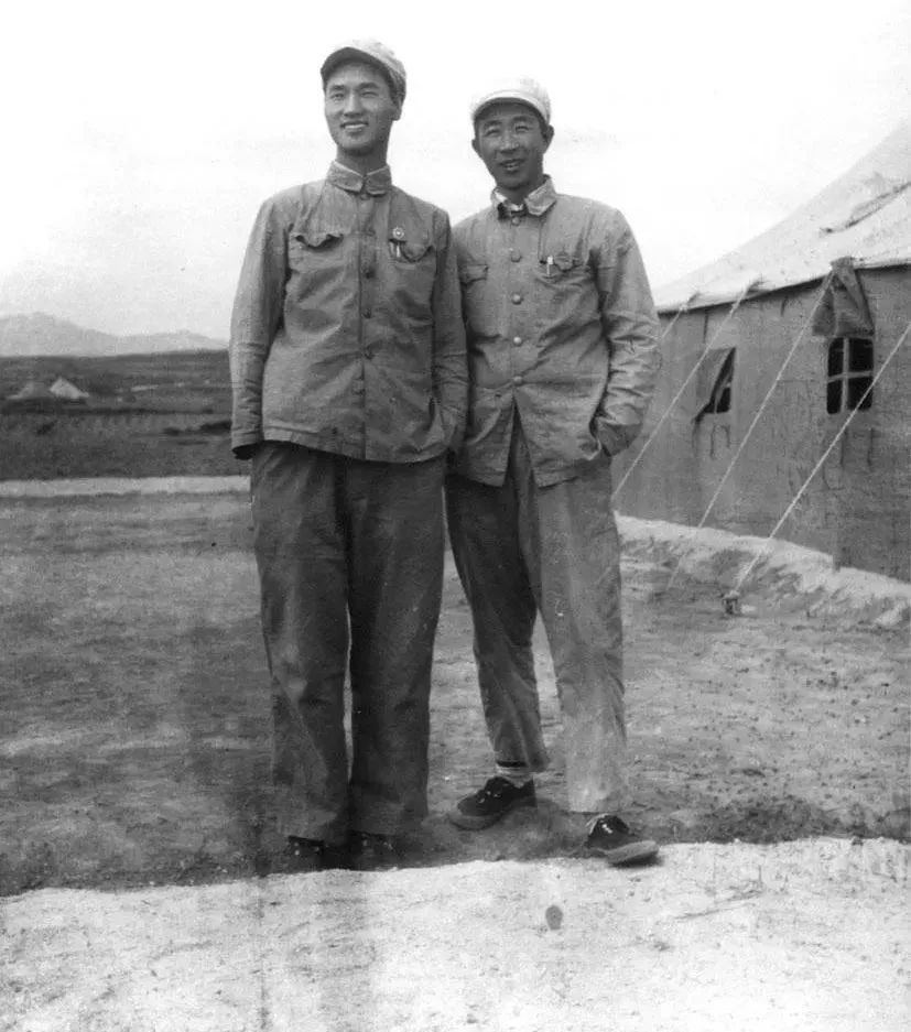 1951年夏新華社記者閻吾(右)、李耐因在開城停戰(zhàn)談判會場帳篷外留影。