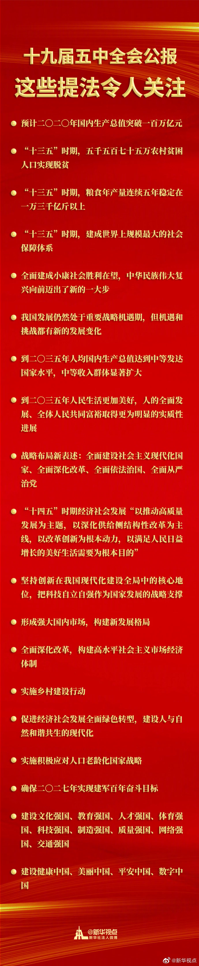 面向未來(lái),全會(huì)及其通過(guò)的建議擘畫了中國(guó)未來(lái)5年以及15年的發(fā)展新藍(lán)圖,宣示了以習(xí)近平同志為核心的黨中央帶領(lǐng)全黨全國(guó)各族人民同心同德、頑強(qiáng)奮斗,奪取全面建設(shè)社會(huì)主義現(xiàn)代化國(guó)家新勝利的堅(jiān)定決心。