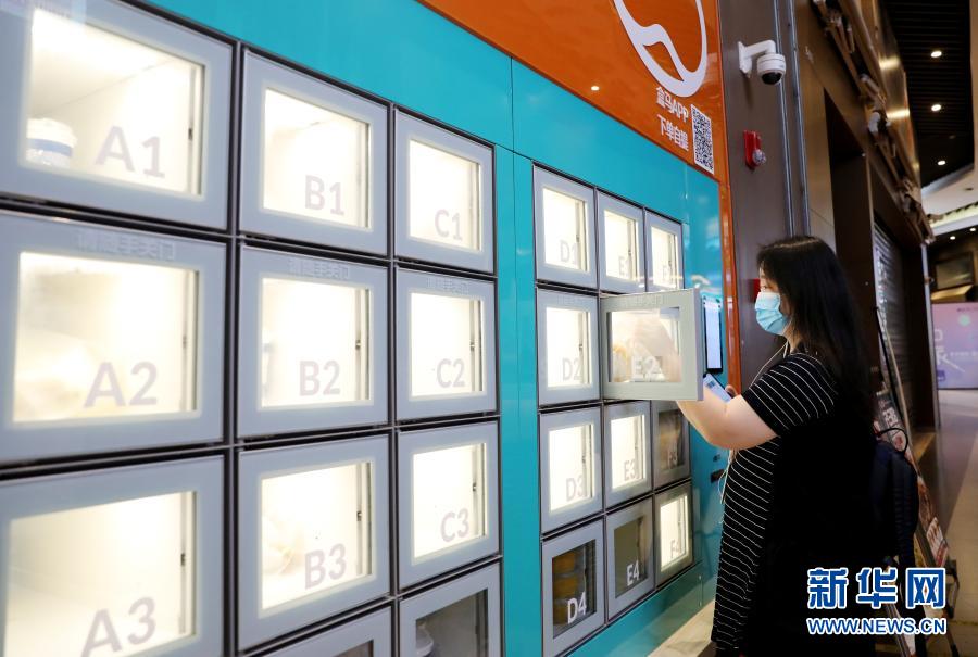 一位顧客通過APP掃碼,在上海地鐵13號線世博會博物館地鐵站附近的一家盒小馬服務(wù)點取餐柜中拿取預(yù)定的早餐(7月17日攝)。新華社記者 方喆 攝