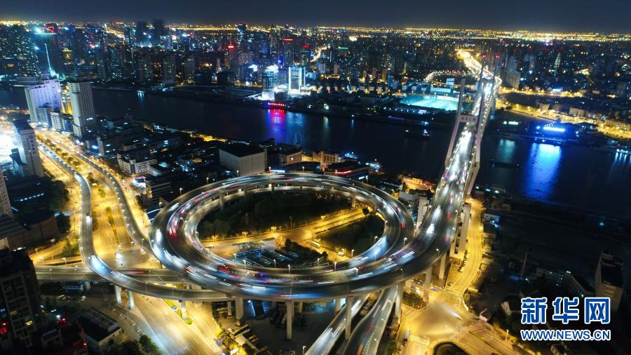 這是上海南浦大橋夜景(2017年4月13日攝,無人機照片)。新華社記者 丁汀 攝