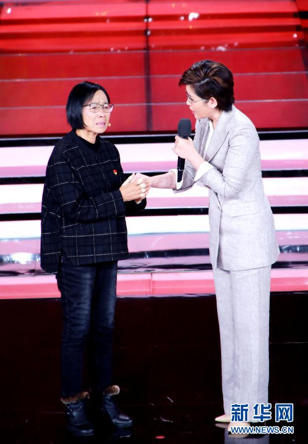 張桂梅(左)在“時(shí)代楷模”發(fā)布儀式上與主持人交流(12月7日攝)。新華社記者 潘旭 攝