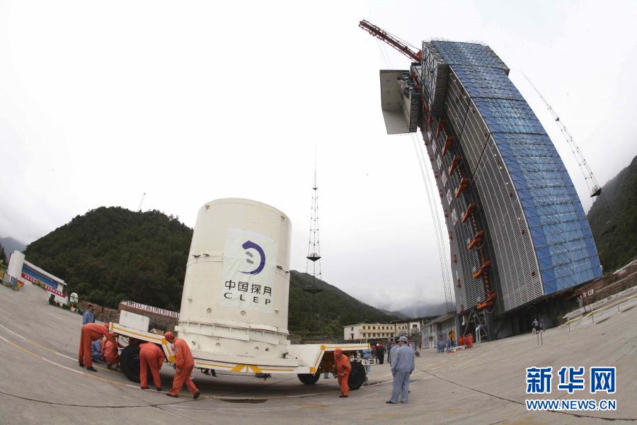 嫦娥一號衛(wèi)星運抵西昌衛(wèi)星發(fā)射中心西昌發(fā)射場(2007年10月11日攝)。新華社發(fā)(郭文彬 攝)