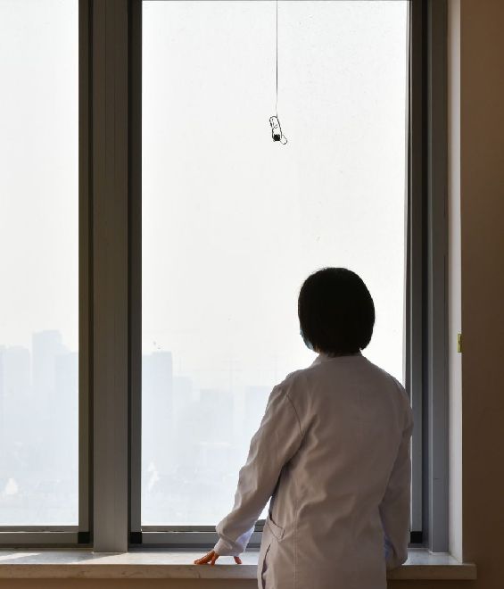 12月19日,在合肥市京東方醫(yī)院,周國紅在午休時(shí)間眺望窗外。