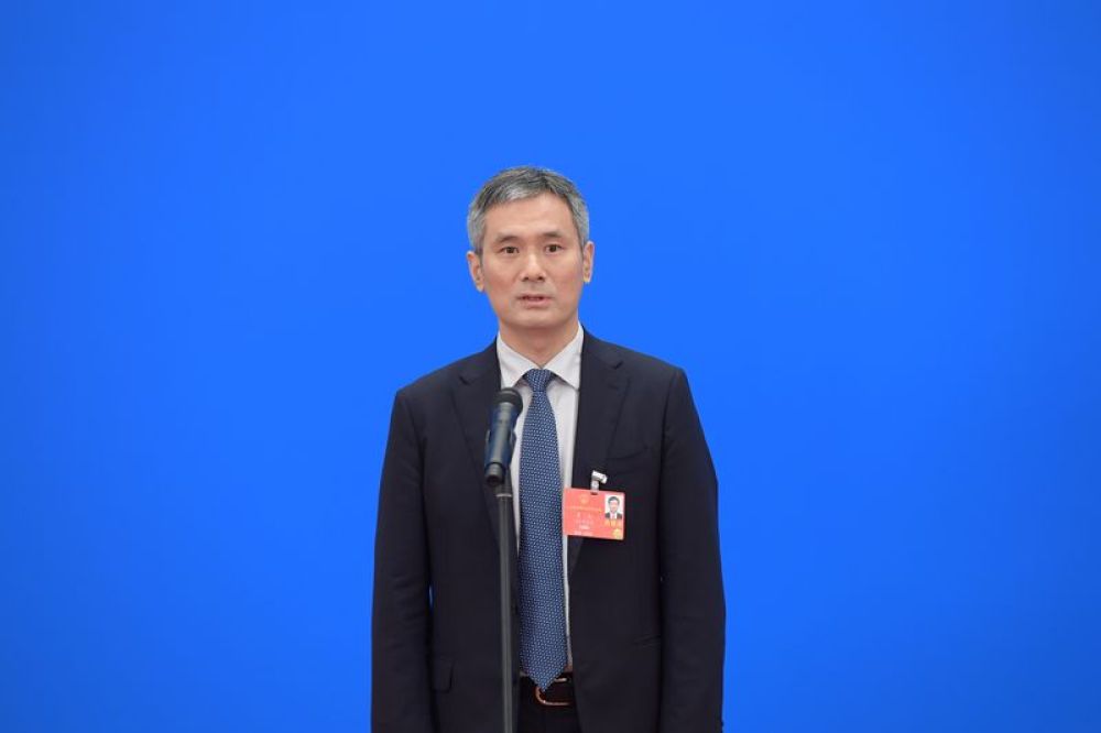 5月22日,第十三屆全國(guó)人民代表大會(huì)第三次會(huì)議舉行首場(chǎng)“代表通道”采訪活動(dòng)。這是全國(guó)人大代表羅杰接受采訪。新華社記者 李賀 攝