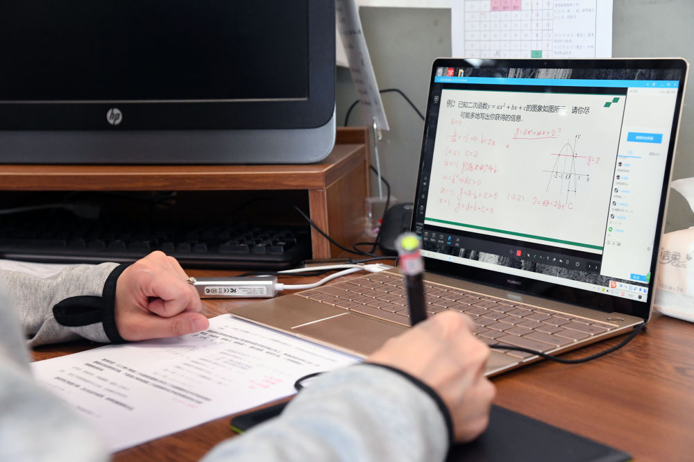 4月14日,在北京科技大學(xué)附屬中學(xué),學(xué)生在線上初三數(shù)學(xué)課。新華社記者 任超 攝