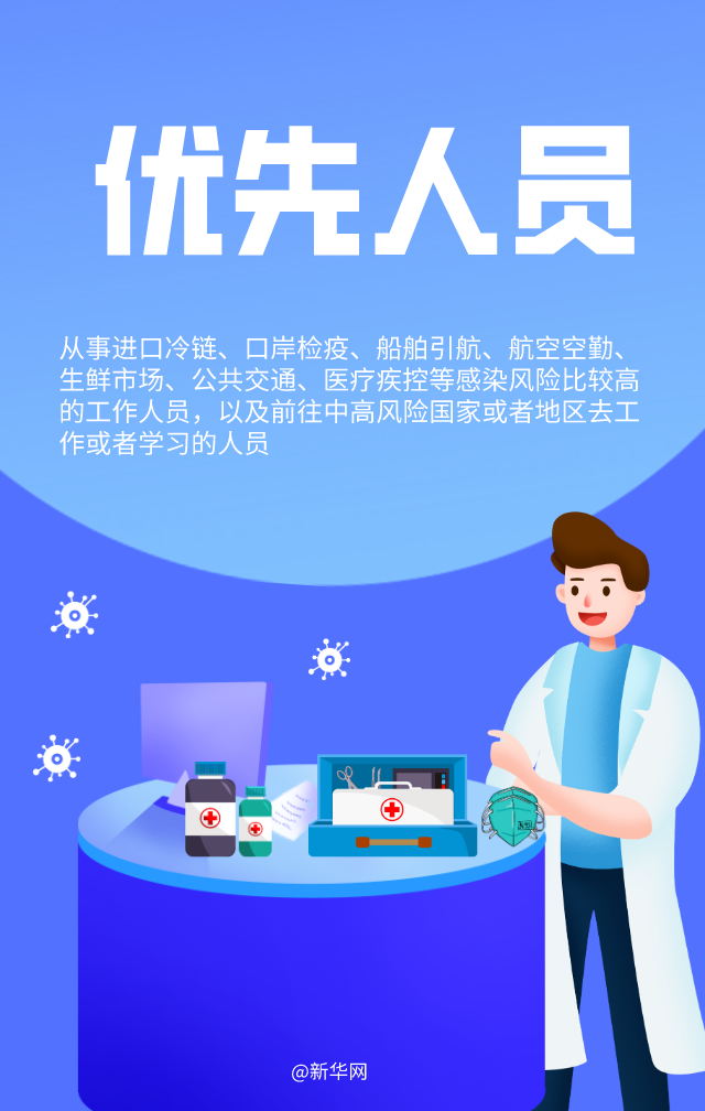 1月1日起,部分地區(qū)重點(diǎn)人群開(kāi)始接種我國(guó)首批新冠病毒疫苗。哪些人員優(yōu)先接種?接種疫苗需要打幾針?哪些人不適合接種?接種疫苗后是否需要繼續(xù)戴口罩?十個(gè)關(guān)鍵詞帶你了解新冠病毒疫苗接種要點(diǎn)。