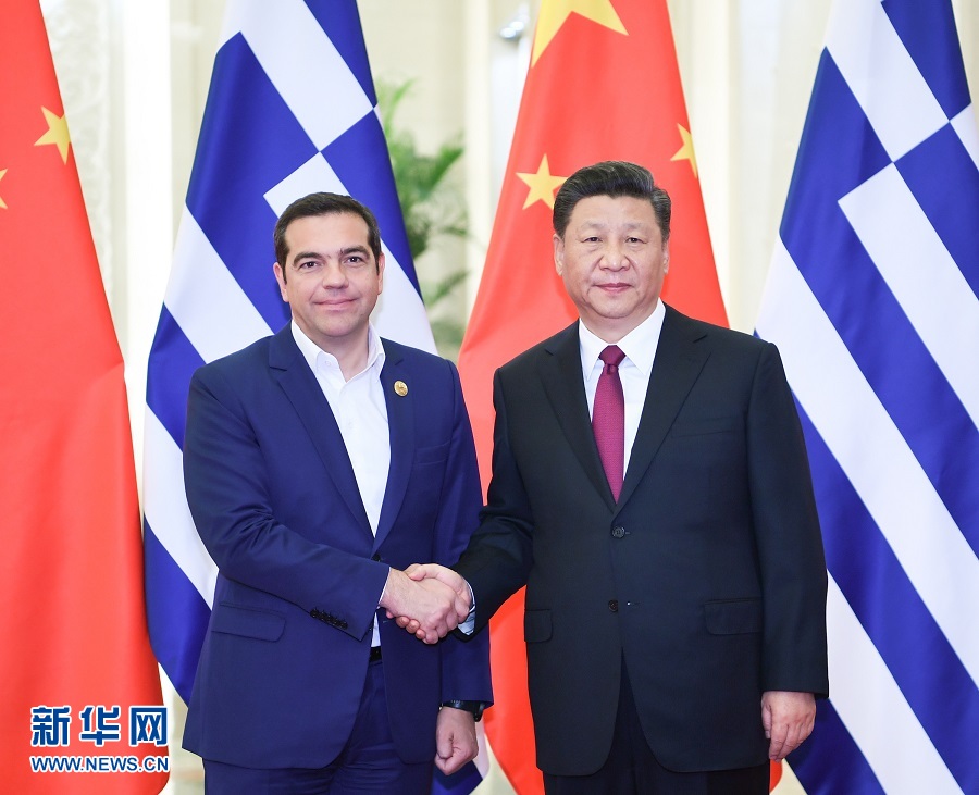4月26日,國家主席習(xí)近平在北京人民大會堂會見希臘總理齊普拉斯?!⌒氯A社記者 張領(lǐng) 攝