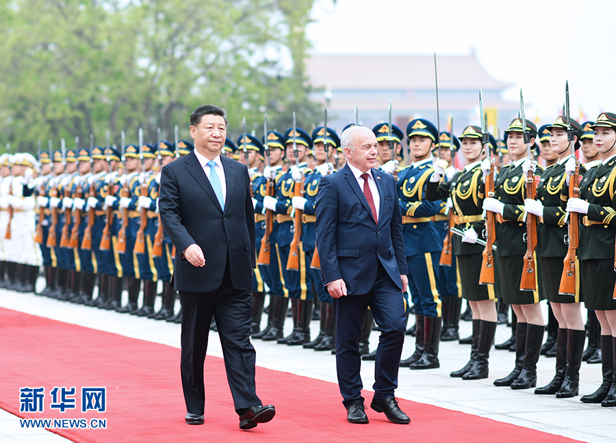 4月29日,國(guó)家主席習(xí)近平在北京人民大會(huì)堂同瑞士聯(lián)邦主席毛雷爾舉行會(huì)談。這是會(huì)談前,習(xí)近平在人民大會(huì)堂東門外廣場(chǎng)為毛雷爾舉行歡迎儀式。 新華社記者 謝環(huán)馳 攝
