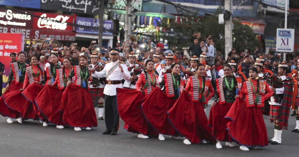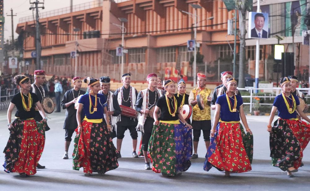 2019年10月12日,尼泊爾首都加德滿都,尼泊爾民眾載歌載舞,熱烈歡迎中國國家主席習近平來訪。新華社記者丁林攝
