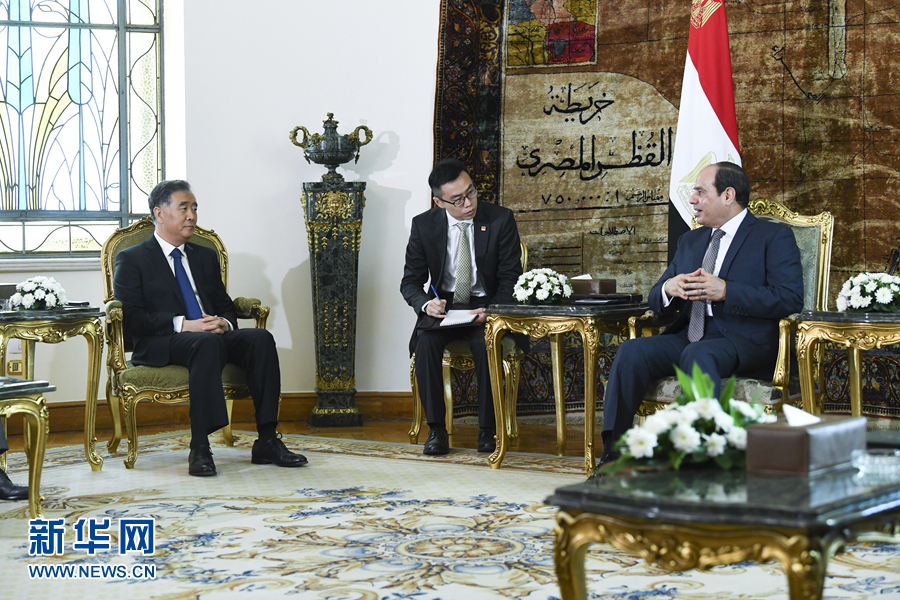 塞西請汪洋轉(zhuǎn)達(dá)對習(xí)近平主席的親切問候,對中國共產(chǎn)黨執(zhí)政70年來取得的巨大成就表示衷心祝賀,對埃中關(guān)系達(dá)到前所未有的水平和深度感到由衷喜悅。他表示,埃方支持“一帶一路”倡議,歡迎中方企業(yè)加大對埃及投資。希望中方進(jìn)一步發(fā)揮影響力,推動中東地區(qū)和平穩(wěn)定。埃方愿與中方就去極端化等問題加強(qiáng)交流互鑒。