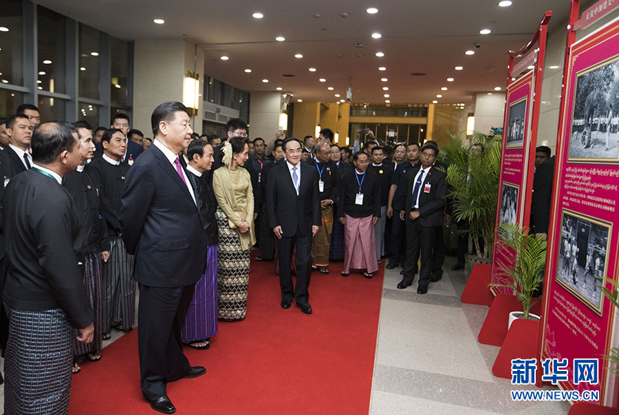 當(dāng)晚,習(xí)近平同緬甸聯(lián)邦議會議長兼人民院議長蒂昆密和民族院議長曼溫凱丹進(jìn)行了友好交談,并和緬甸主要政黨領(lǐng)導(dǎo)人集體合影留念。
