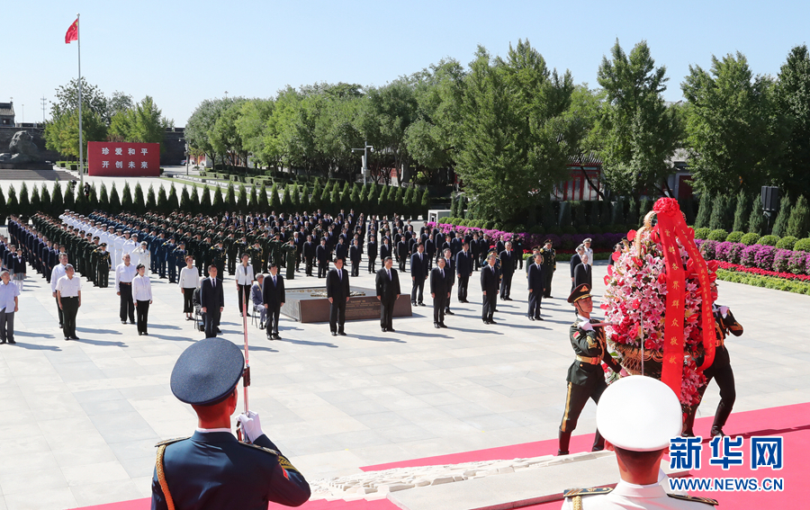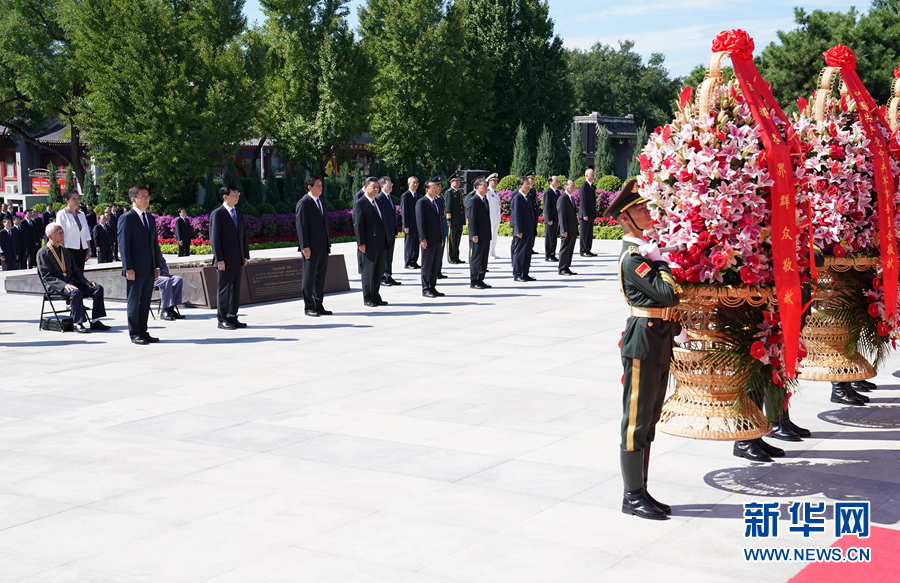 9月3日上午,習(xí)近平、李克強、栗戰(zhàn)書、汪洋、王滬寧、趙樂際、韓正、王岐山等黨和國家領(lǐng)導(dǎo)人來到中國人民抗日戰(zhàn)爭紀念館,出席紀念中國人民抗日戰(zhàn)爭暨世界反法西斯戰(zhàn)爭勝利75周年向抗戰(zhàn)烈士敬獻花籃儀式。 新華社記者 丁林 攝