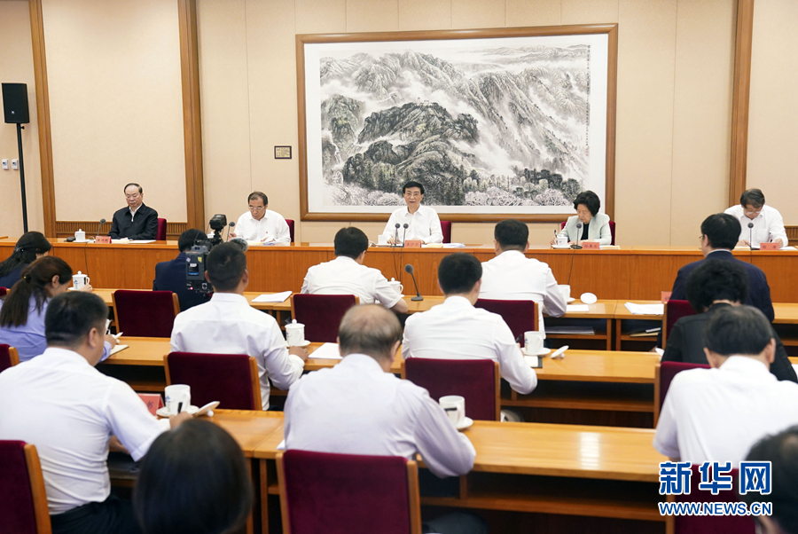 陳希主持座談會(huì),孫春蘭、楊曉渡、黃坤明出席座談會(huì)。