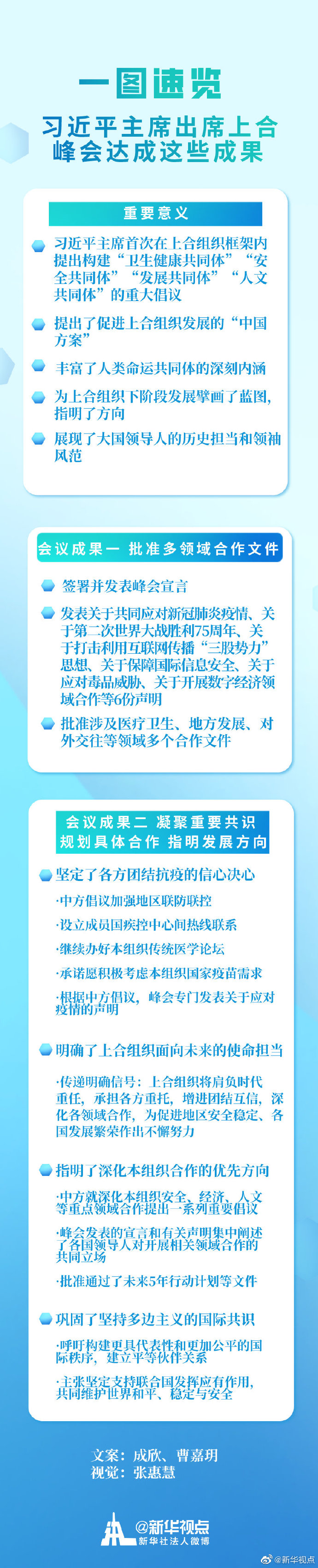 上海合作組織成員國元首理事會(huì)第二十次會(huì)議10日舉行,國家主席習(xí)近平出席并發(fā)表重要講話。此次會(huì)議由上海合作組織輪值主席國俄羅斯主辦,以視頻方式舉行。習(xí)近平主席講話的重要意義主要有哪些?此次峰會(huì)簽署了哪些文件?提出了哪些倡議?請(qǐng)戳圖↓?