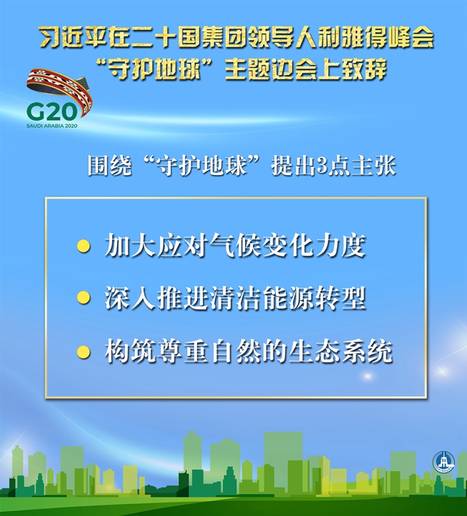 海報|習近平在二十國集團領(lǐng)導人利雅得峰會“守護地球”主題邊會上致辭