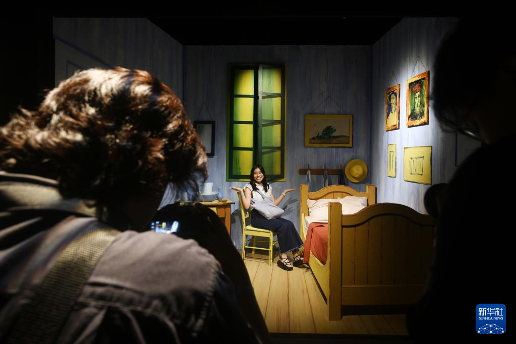 2月28日,一名女子在新加坡参观《梵高:沉浸式体验展》预展。