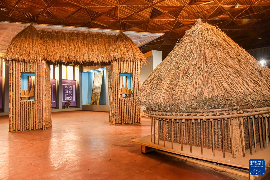 这是在喀麦隆姜村拍摄的喀麦隆文明博物馆展出的传统房屋(4月10日摄)。