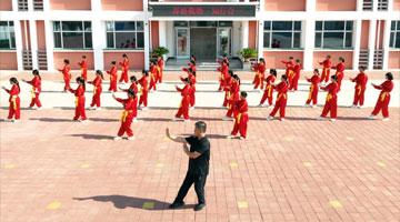 艺术节现场展示的手工作品《青山绿水》(8月15日摄)。该作品由设计师和海派钩针编结非遗传承人共同创作,呼吁人们保护山河草木。