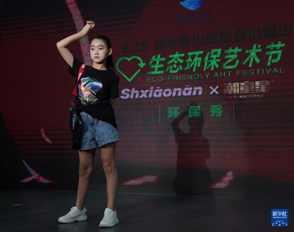 8月15日,小模特在艺术节开幕式上展示以海洋生物多样性保护为主题的服装。