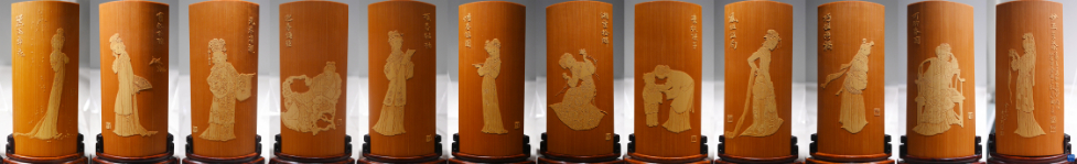 10月14日拍摄的刘旦宅画、徐秉方刻的留青竹刻台屏作品“金陵十二钗”(拼版照片)。