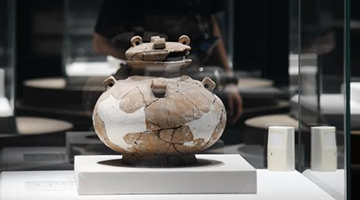 11月5日,在湘潭市博物馆,观众在观看齐白石作品《虾蟹图》。