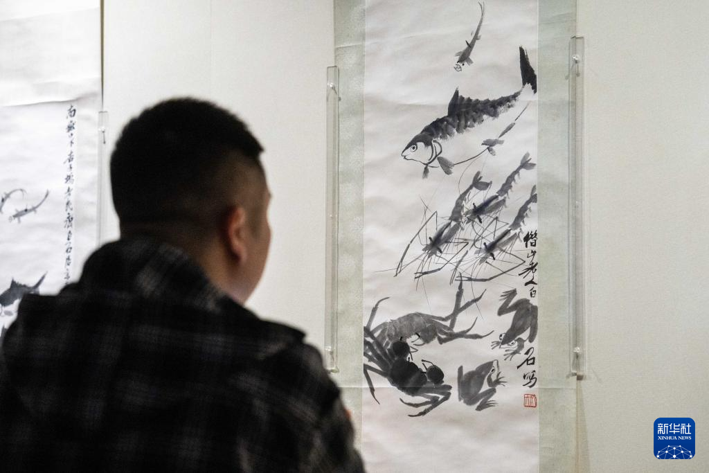 11月5日,在湘潭市博物馆,观众在观看齐白石作品。