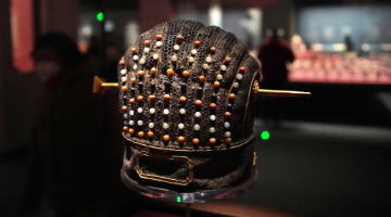 1月16日,市民在河北省群众艺术馆参观迎新春民俗文化展。