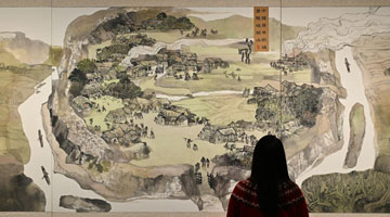 几名游客在甘肃省张掖市甘州区甘州府城景区内的冰雕展区内参观即将完工的冰雕作品(1月21日摄)。