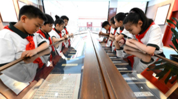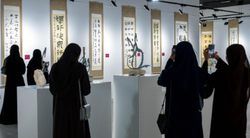 5月3日,人们在墨西哥首都墨西哥城举办的“兰亭·雅集”中国书法展上欣赏书法作品。