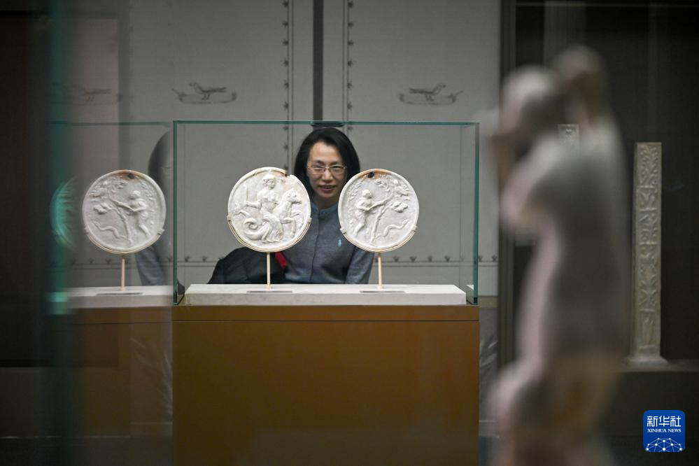 这是展出的圆形浮雕挂饰(2月3日摄)。