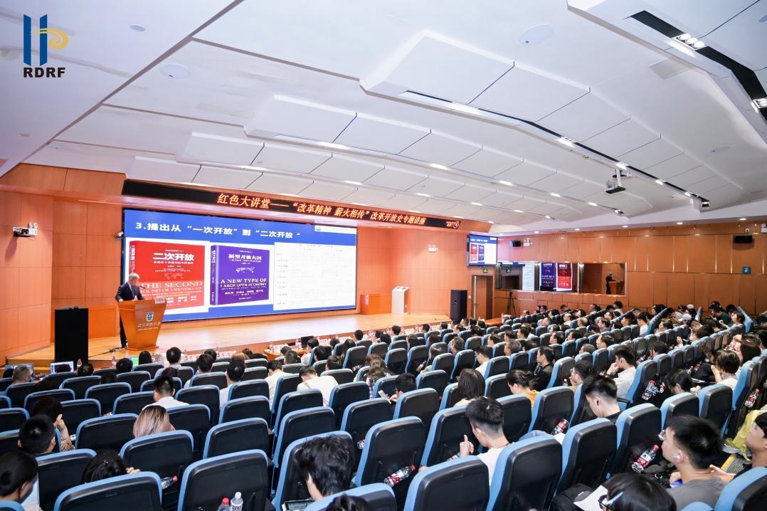 中国(海南)改革发展研究院院长、海南自由贸易港研究院院长迟福林教授以“与青年谈改革开放”为题作专题讲座。迟福林教授就“改革开放是决定当代中国前途命运的关键一招——从小时候吃不饱饭说起”“建立和完善社会主义市场经济体制——从吃发了霉的花生米说起”“坚持人民至上——从少年时代家人不同医疗保障待遇说起”“坚持对外开放基本国策——从为什么到海南说起”四个方面,与青年学生和老师谈改革开放历史。讲座最后,迟福林教授回顾了改革开放的三大历史性跨越,分析中国从经济大国向经济强国迈进的历史性趋势并寄语道,青年决定全面深化改革开放的未来。如何让青年了解改革开放的历史,如何使得未来的改革符合青年的期望值和坐标系,如何使得青年自觉地融入改革开放事业,是全面深化改革的时代之问。青年人学习了解改革开放史,了解历史、珍惜今天、把握趋势,在新时代全面深化改革开放中做出新的作为。