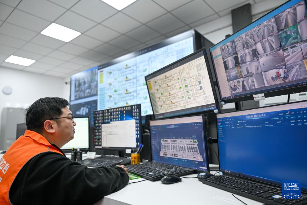 2月26日,在位于京津产业新城高村数智创新园的中国联通京津冀数字科技产业园,工程师监测服务器设施运行情况。