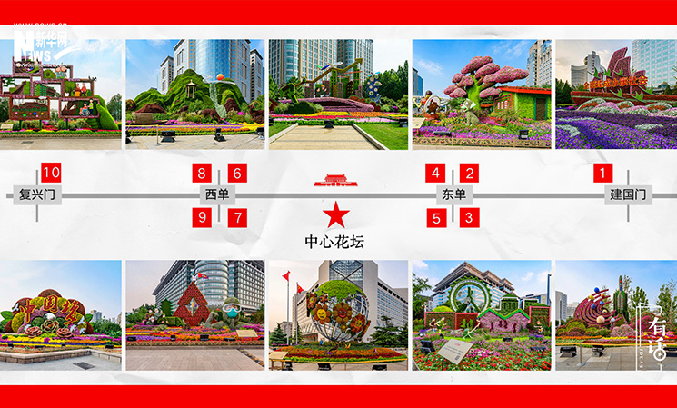長安街沿線,從建國門到復(fù)興門,布置了10組立體花壇,體現(xiàn)決勝全面小康,共襄復(fù)興偉業(yè)的壯闊藍(lán)圖。