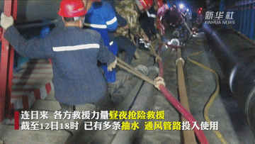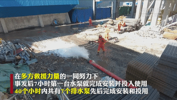 應急、消防、電力、衛(wèi)健等多部門人員正緊張有序開展工作。在多方救援力量的一同努力下,事發(fā)后7小時,第一臺水泵就完成安裝并投入使用。40個小時內(nèi),發(fā)生事故煤礦共有7個排水泵先后完成安裝和投用。