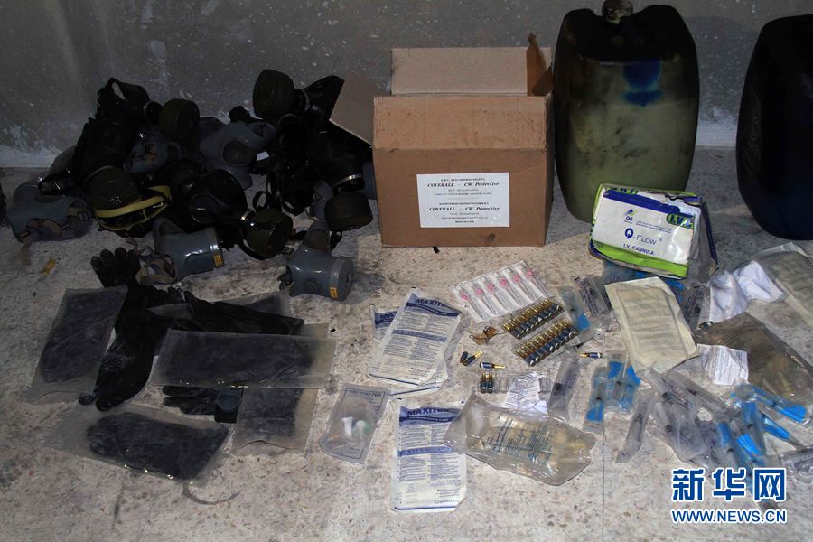 反對派武裝的地下軍火庫,存有防毒面具、裝有化學制劑的油桶和盛有針劑大小有毒液體的器皿。