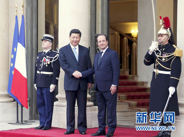 3月26日,國(guó)家主席習(xí)近平在巴黎同法國(guó)總統(tǒng)奧朗德舉行會(huì)談。新華社記者蘭紅光攝