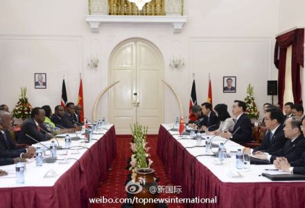 ??? 新華網(wǎng)北京5月10日電 據(jù)新華社“新國際”微博報道,李克強總理與肯尼亞總統(tǒng)肯雅塔舉行會談后,共同見證了雙方多項協(xié)議的簽署。其中中肯航空合作諒解備忘錄、雙方在肯及東非地區(qū)開展航空產(chǎn)業(yè)合作的協(xié)議備受矚目。分析認為,這標志著李克強倡議的中非打造“三大網(wǎng)絡”中的非洲區(qū)域航空網(wǎng)邁出重要一步。