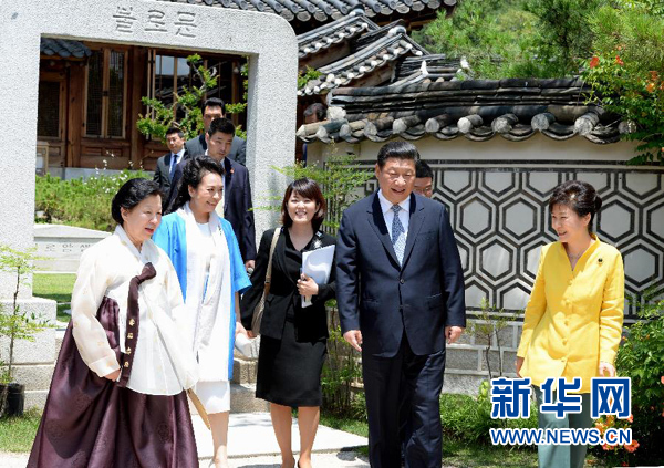 7月4日,國(guó)家主席習(xí)近平在首爾再次會(huì)見(jiàn)韓國(guó)總統(tǒng)樸槿惠。 新華社記者饒愛(ài)民 攝
