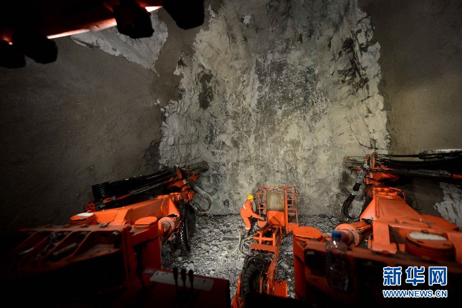 7月5日,工人們在烏茲別克斯坦安革連至琶布鐵路隧道緊張工作。(沙達提 攝)